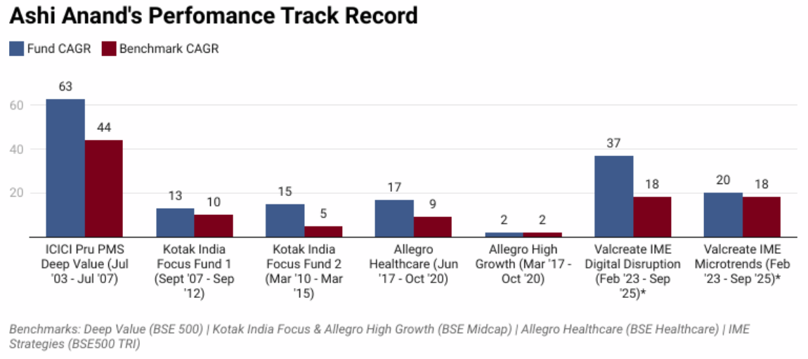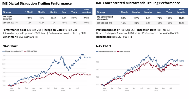 - IME Digital Disruption and IME Concentrated Microtrends were earlier managed by Ashi Anand at Valcreate Investment Managers from 10-Feb-23 to 30-Sep-25.